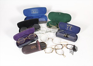 Lot: 8 Brillen/Zwicker, weißes u. gelbes Metall, 6 Brillenetuis