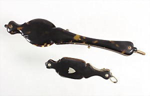Lot: 2 Longions um 1900, Schildpatt, L = 8,6-16,7 cm, kl. Longion: Glas mit Riss Für diesen Artikel ist ein Versand in nicht EU-Länder leider nicht möglich !