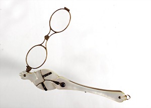 Longion, "JUGENDSTIL um 1900, Perlmutter (beidseitig), vorne mit Granaten besetzt, L = 16,2 cm