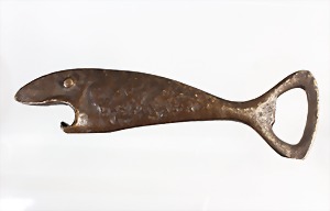 "VINTAGE" Flaschenöffner, wohl "CARL AUBÖCK" Wien zugeschrieben, 1940/50iger Jahre, Bronce, L = 17,5 cm, total 317,5 g,