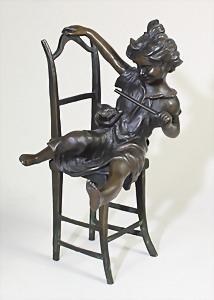 Broncefigur, "MÄDCHEN mit KATZE", sig.: F Iffland PARIS (1862-1935). Kl.Mädchen (auf einem Stuhl) spielt ganz unbekümmert mit einer Katze, Manufakturmarke: J.B DEPOSE BRONZE GARANTIE PARIS ! (nach Original !)