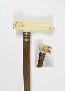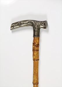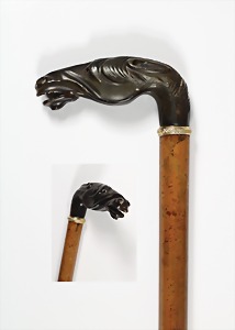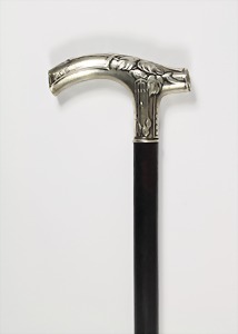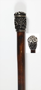 Reservistenstock - 2.Weltkrieg Spazierstock, Metallkopf: Soldatenbüste mit Stahlhelm, "Reserve hat Ruh", Holz-Stock mit Stoff ummantelt u. 2 Troddeln, L =.ca. 90 cm, guter Erhaltungszustand !