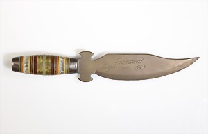 Messer, 2. Weltkrieg, "Russland Luga - 1943", Griff: farbiger Kunststoff/Leder, L = 16,3 cm