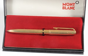 Kugelschreiber "MONTBLANC" PIX-O-MAT PAT. GERMANY, vergoldet, 3-Farben, L = 13,5 cm, Original-Schatulle !