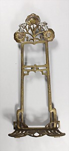 Buchständer, "JUGENDSTIL" um 1900/10, graphische und verspielte Elemente geben einen besonderen Charm, Blüten farbig gestaltet, H = ca.40,5 cm, (Stütze fehlt !)
