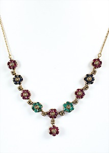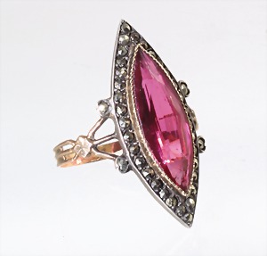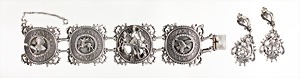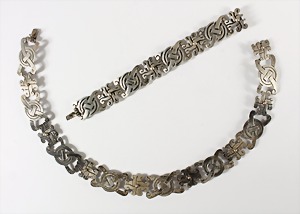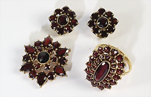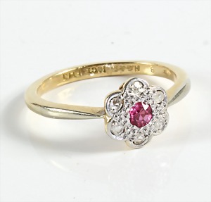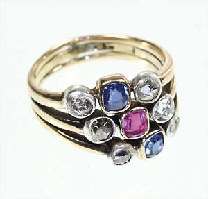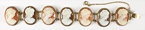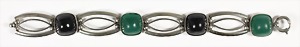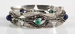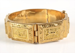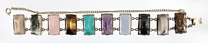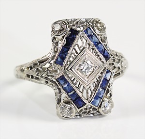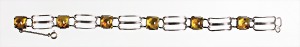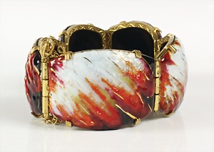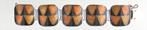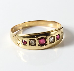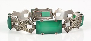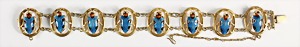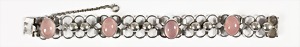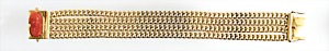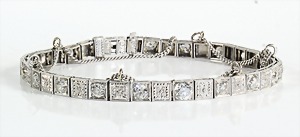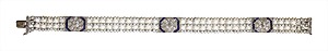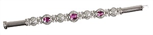 Armband, "ART-DECO" 1930er Jahre, Platin (geprüft), mittlerer Rubin ca. 3,8 ct, in sehr feiner Farbe (ca. 10,0 x 8,2 mm), 2 weitere Rubine ca. à 3,0 ct (ca. 10,0 x 7,2 mm), 4 Altschliff-Diamanten ca. 3,7 ct w/leicht getönt- piquet. Alle Steine hoch geschliffen ! Weitere Diamanten, (144 Stück, total ca. 2,0 ct tw/w-si) umspielen die zentral angeordneten Steine, Kastenschloss mit Sicherheitsklappe, halbrund geformtes Band, L = 18,8 cm. Schönes stimmiges Schmuckstück !