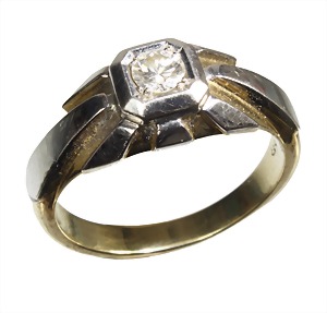 ring, yellow gold/white gold 585/000, 1 brilliant c. 0.32 ct tw-vvsi/if (flawless), ring width c. 64