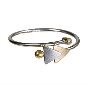 Ring, Platin 950/000, kl. Brillant weiß, in Gold abgesetzte Elemente, RW ca. 53,5
