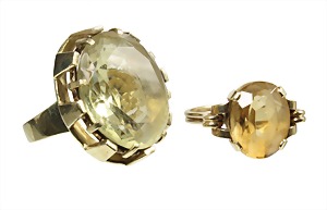 lot: 2 rings, yellow gold 585/000, 1 ring, citrine c. 6.0 ct (13.5 x 11.0 mm), ring width c. 57,5, 1 ring, citrine c. 22.0 ct (21 x 17 mm), ring width c. 56,5, total 18.0 g