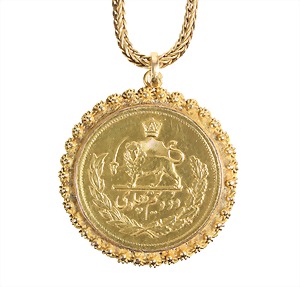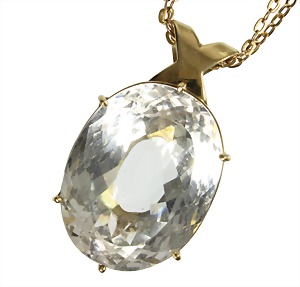 pendant, yellow gold 750/000, rock crystal (quartz) c. 33 x 25.5 mm, height = 46.0 mm, chain (twice), yellow gold 585/000, lenght = c. 75.0 cm with clock swivel