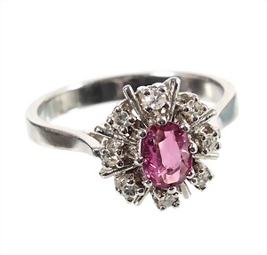 ring, white gold 585/000, 8 pieces 8/8 diamonds c. 0.16 ct white, 1 ruby c. 0.40 ct, ring width c. 55.5 (from a liquidation)