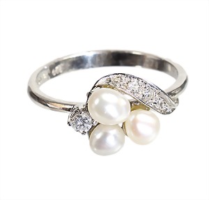 ring, white gold 585/000, 1 brilliants, 4 pieces 8/8 diamonds c. 0.09 ct white, 3 freshwater pearls, ring width c. 53
