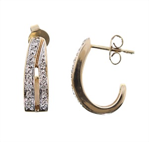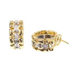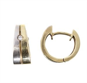 a pair of creoles (clip with pin), yellow gold/white gold 750/000, 28 brilliants c. 0.42 ct tw-vsi, set in white , chain ring look, diameter = 17.2 mm, width = 8.2 mm, total 15.4 g