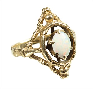 Ring, GG 585/000, Opalcabochon (berieben), RW ca. 51