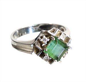 ring, white gold 585/000, tourmaline with carré cut c. 1.2 ct, 4 diamonds white, ring width c. 56