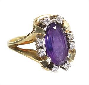 Ring, GG 585/000, Amethyst ca. 3,0 ct, 8 Brillanten ca. 0,17 ct weiß, RW ca. 53