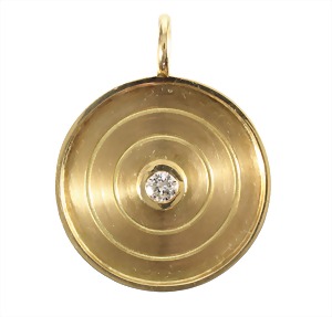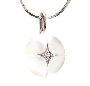 pendant, white gold 585/000, satinated rock crystal diameter = 20.5 mm, 1 brilliant c. 0.07 ct tw-vsi/vvsi, height = 31.0 mm, chain, white gold 585/000, lenght = c. 41.0 cm