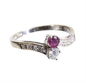 Ring, WG 585/000, 8 St. 8/8 kant Diamanten ca. 0,16 ct weiß,1 Rubin ca. 0,40 ct, RW ca. 55,5 (aus Geschäftsauflösung)
