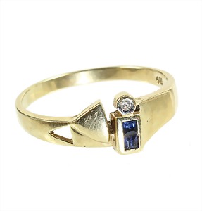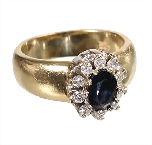 ring, yellow gold 585/00, central sapphire c. 0.5 ct, 10 brilliants c. 0.12 ct w-si (all stones are white set), ring width c. 44.5 (for the little finger !)