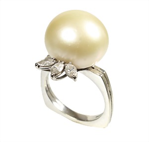 ring, palladium 950/000, 1 aquamarine c. 8 x 5.5 mm, elongated freshwater pearl, 15 brilliants c. 0.38 ct white, ring width c. 50