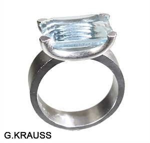 Ring, GG 750/000, Blautopas im Navetteschliff ca. 7,5 ct (20 x 9,5 mm), RW ca. 59, schwer gearbeitete Ringschiene, total ca. 11,9 g.