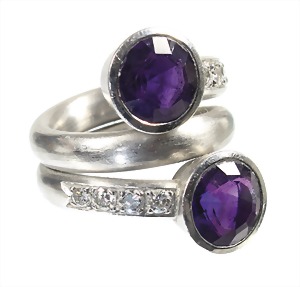 Lot Amethystschmuck:, GG 333/000, weiße Steine, 1 Ring, RW ca. 58,5 (Schiene muss gelötet werden!); 1 Anhänger H = 25,7 mm (Schlaufe zum Öffnen); 1 Paar Ohrstecker, H = 13,7 mm