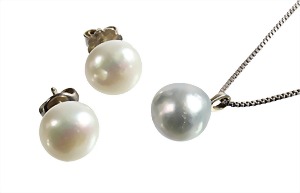 Lot Perlschmuck: GG 333/000, Süßwasser-Perlen mit weißen Steinen, 1 Paar Ohrstecker H = 19,7; 1 Anhänger H = 19,7 mm (Schlaufe zum Öffnen)