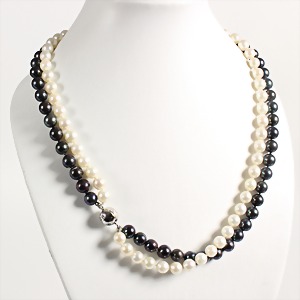 chain, yellow gold/white gold 585, akoya pearls in the course, diameter = 6.0-9.8 mm, pearl garland in the clasp, lenght = 61.5 cm