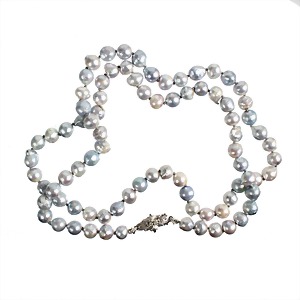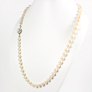 Kette, GG/WG 585, Akoja-Perlen im Verlauf, D = 6,0-9,8 mm, Perlkranz in der Schließe, L = 61,5 cm