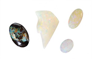 lot: various opals (Australia), 3 white opals c. 8.50 ct, 1 boulder opal c. 3.32 ct