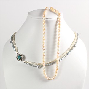 lot freshwater pearls chains, 1 chain, silver clasp, lenght = 42.5 cm, 1 chain (in two rows), clasp, white gold 585/000, with opal tripletteon both sides , lenght = 42.5 cm