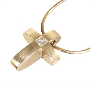 pendant cross, yellow gold 585/000, signed CHRIST, 1 diamond with princess cut c. 0.07 ct tw-vsi, cross c. 17.5 x 14.0 mm, chain yellow gold 585/000, lenght = 45.5 cm