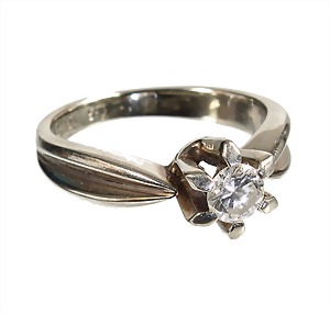 ring, white gold 585/000, 1 brilliant c. 0.05 ct (engraved) tw-vsi, ring width c. 57