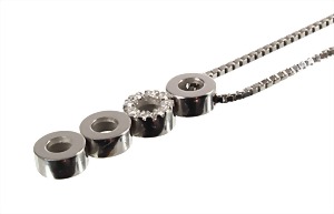 pendant, 4 circles, white gold 750/000, 8 brilliants c. 0.08 ct tw-vsi, height = 26.0 mm, several circles are slightly moveable, box chain, white gold 750/000, lenght = 41.8 cm