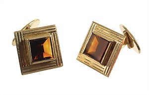 a pair of cufflinks, yellow gold 585/000, 2 garnets with carré cut c. 7.0 ct, c. 17.7 x 17.7 mm, total 16.2 g