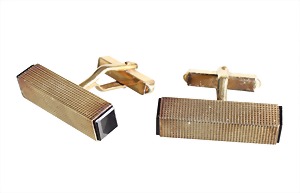 1 Paar Manschettenknöpfe, GG 585/000, sig. XX, 4 Onyx-Scheiben, Oberfläche mit feinem Waffelmuster, L = ca. 26,8 mm, total 13,6 g