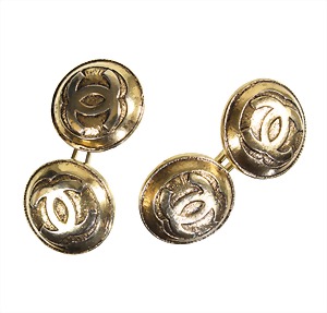 a pair of cufflinks, "COCO CHANEL", gold colored, signed CHANEL, diameter = 14.0 mm (worn !)