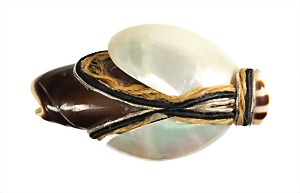 Brosche, stilisiertes INSEKT aus Muscheln, Bändern u. Metall, sig. emanuel ungaro parallèle-paris made in italy, ca. 61,3 x 35,3 mm