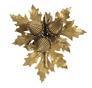 decorative brooch, bronze colored metal, signed Joseph (JOSEFF of HOLLYWOOD), stylized acorns and leaves, c. 94.5 x 96.0 mm