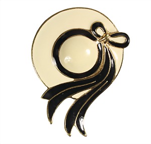 brooch, hat, gold colored, signed TRIFARI (USA), creamcolored and black enamel coating, c. 45.5 x 61.5 mm