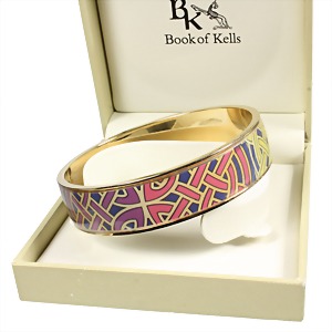 Armreif von "BOOK OF KELLS" (Irland/Dublin), farbiges Emaille, in Pastellfarben gehaltenes keltisches Muster, goldfarben eingefasst, B = 16,0 mm, innen: D = 64,5 mm, orig. Schatulle, sehr guter Zustand !