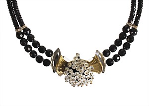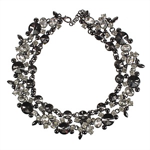 decorative necklace, blackened metal, unsigned, colorless rhinestone and black translucent rhinestones (faceted), c. 45.0- 51.0 cm