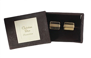 a pair cufflinks, "C. DIOR", metal gilded signed Chr. Dior Germany, c. 20 x 14 mm