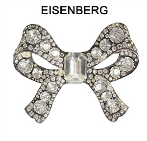 Brosche, SCHLEIFE 1940er Jahre, Silber STERLING (925/-), sig. Eisenberg ORIGINAL, farblose Strasssteine von feinster Qualität, ca. 72,8 x 57,8 mm. Sammelwürdig !