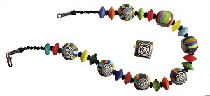 lot: necklace and ring, silver 925/000, signed T heartsymbol R, colored plastic and glass, necklace lenght = 48.0 cm, ring, ring head 20.5 x 20.5 mm, ring width c. 53.5