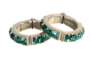 a pair of creoles, metal white, signed white, greenish blue rhinestone, diameter = c. 22.0 mm