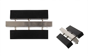 brooch, "C. DIOR", white metal, signed Chr. Dior 1970 Germany, black plastic cuboid, c. 59.2 x 38.1 x 13.0 mm