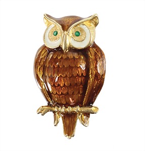 brooch owl on a branch, silver 925/000, gilded, signed MADE IN NORWAV OPRO 925 S, translucent enamel, plastic workded, c. 23.8 x 39.5 mm, very good condition !