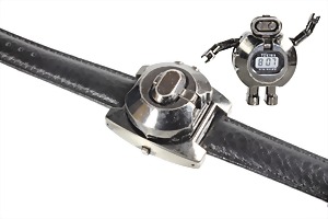 Armbanduhr "VINTAGE", DIGIROBO TOKIMA G.K. 1983 POPY JAPAN, schwarzes Uhrgehäuse, abnehmbar und zum Roboter umzugestalten, digital, Lederarmband mit Dornschließe, stark berieben, Uhr läuft !