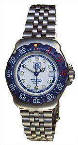 ladies watch, "TAG HEUER", model series Professional, quartz, central second, date at 3 'o clock, screwed bottom , expanding bracelet with folding clasp, svivel bezel with 60s scale, good condition ! needs a new battery, then it will run again !